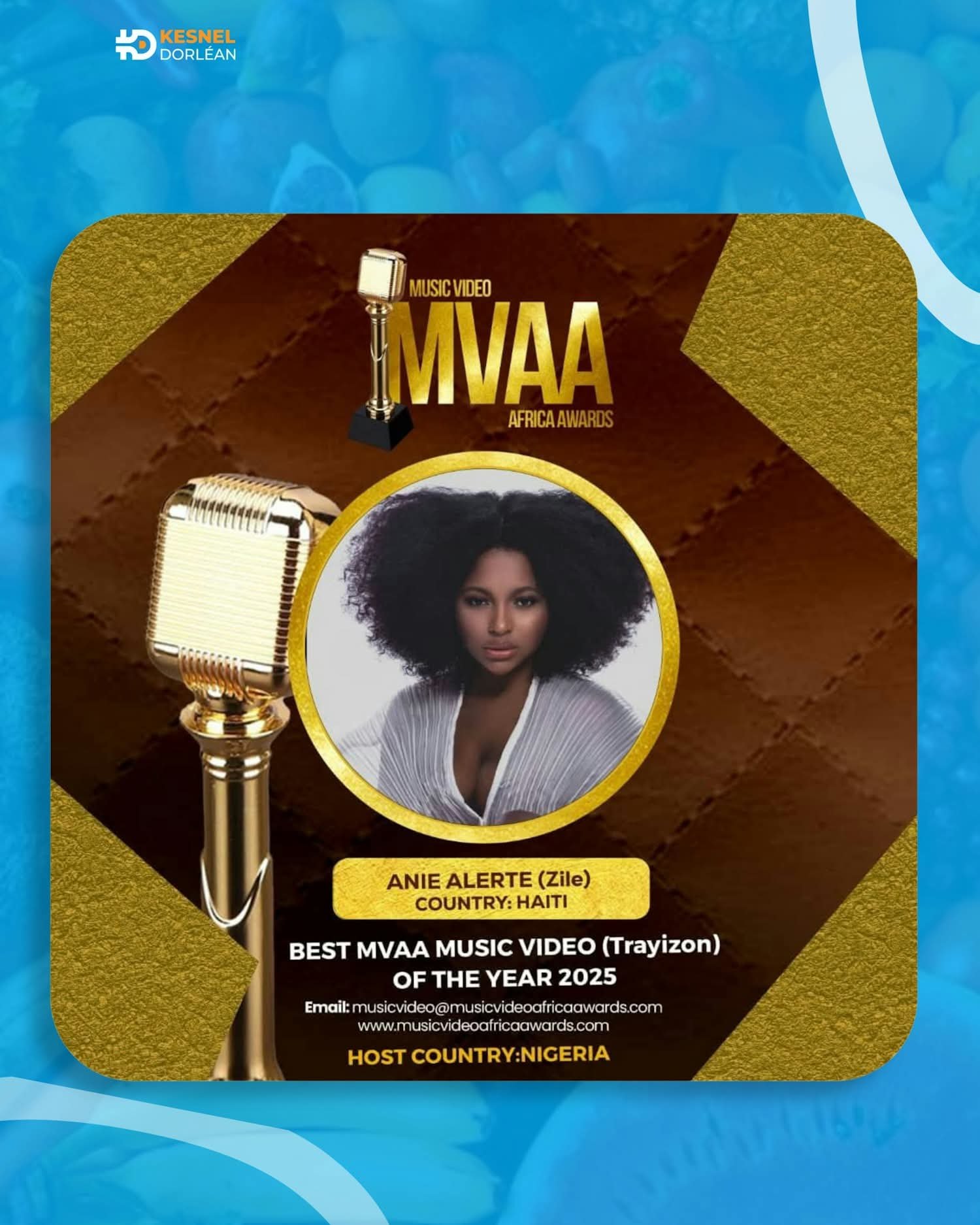 - *ANIE ALERTE y ZILE*: La joven cantante haitiana y su banda musical ZILE fueron premiados este año 2025 por la organización internacional de África "MVAA" ADWARDS por su buen trabajo en la industria musical.