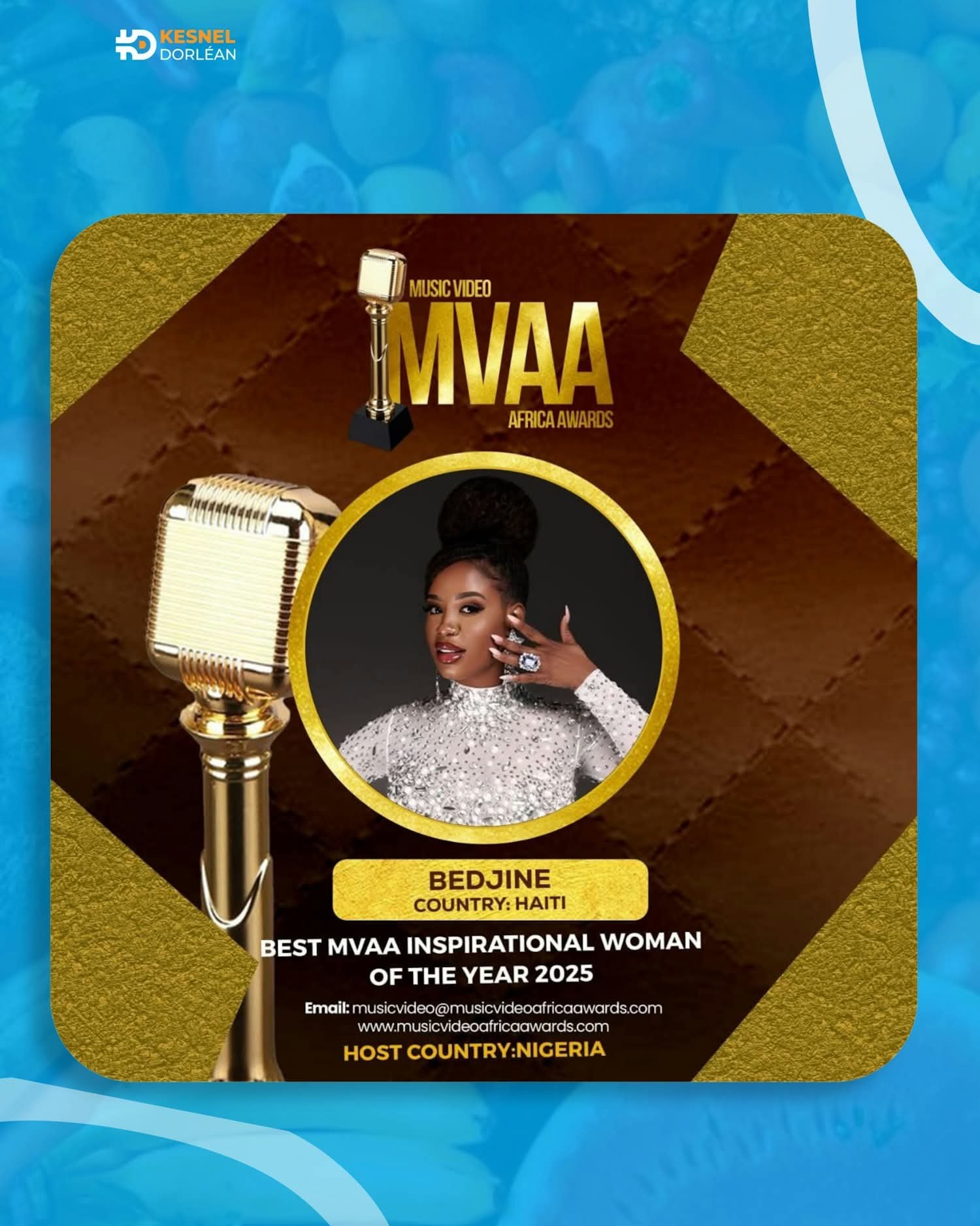 - *BEDJINE*: The young Haitian singer Bedjine received an award for her good work in the music industry in the Caribbean, especially in Haiti, by the international organization "MVAA" ADWARDS in the year 2025.